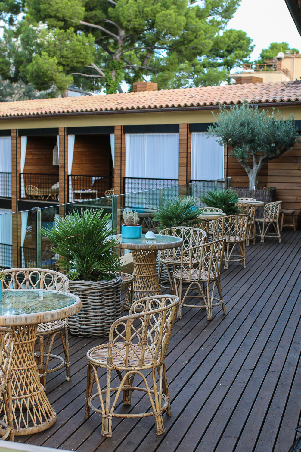 Man kann sich kaum noch vorstellen wie das Hotel früher einmal ausgesehen haben muss, auch wenn die Umbauphase gerade erst in diesem Jahr abgeschlossen wurde. Statt einer Bettenburg ist ein Hotel mit viel Charme entstanden, mit einem ganz besonderen Stil, der das Gefühl von Lässigkeit und Liebe zum Detail auf die balearische Insel transportiert hat und dessen Wurzeln im San Francisco der 1960er Jahre liegen. Das Ganze nennt sich Gypset Style und ist eine Mischung aus Entspanntheit und Hedonismus. Schon beim Betreten der Lobby fallen die floralen Wanddekorationen ins Auge, genau wie die Details, mit denen die tolle Bibliothek mit Coffee Table Books, die Donkey Bar, die Terrasse mit Ausblick auf Pool und Bucht und besonders das Neni Restaurant gestaltet wurde. Das Design und die Accessoires im Boho-Style mögen für Mallorca ungewöhnlich sein, aber sie fügen sich perfekt in Landschaft und Umgebung ein.