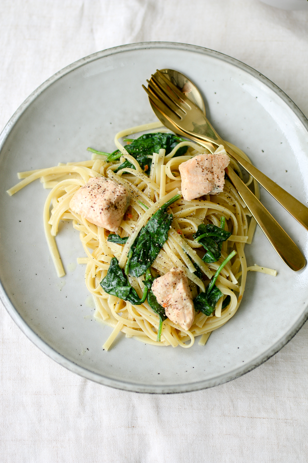 One-Pot-Pasta mit Lachs und Spinat